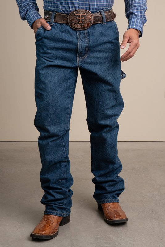 Com modelagem reta e costura reforçada a calça Carpinter Texas Farm é ideal para o dia-a-dia do trabalho no campo. Feita de 100% algodão é cuidadosamente selecionada para resistir ao uso constante garantindo durabilidade sem perder a qualidade. Além disso o jeans possui selos de sustentabilidade como o acquasave que reduz até 75% do consumo de água na produção e o BCI (Better Cotton Initiative) que certifica o uso do melhor algodão sustentável além disso o tecido é engomado com produtos biodegradáveis e utilização de amaciante a base de cupuaçu com baixo impacto ambiental e impacto social positivo e selo eco laundry. Possui cintura e cos medianos pernas relaxadas com 2 bolsos frontais 2 laterais e 2 traseiros com bordado na logo no bolso frontal e filigrana bordado no bolso traseiro com lavagem média e escura tradicionais seu diferencial fica na costura tripla que garante uma alta durabilidade nas peças. Perfeita para quem busca conforto e resistência no trabalho.