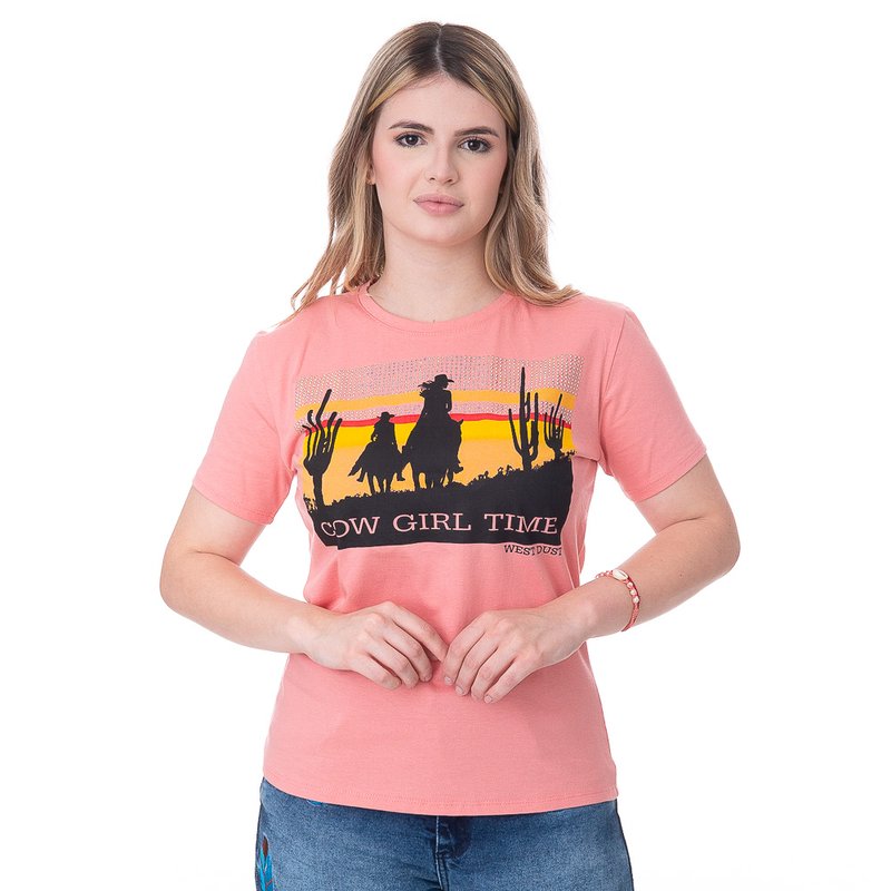 A Camiseta West Dust Cowgirl BL25789 é uma peça feminina com design country, perfeita para quem quer estilo e conforto em eventos como rodeios e festas sertanejas. Na cor rosa médio, ela se destaca pelo visual casual e toque moderno, sendo ideal para composições com jeans e botas. Confeccionada em tecido de alta qualidade, oferece ajuste confortável e versátil para diversas ocasiões.