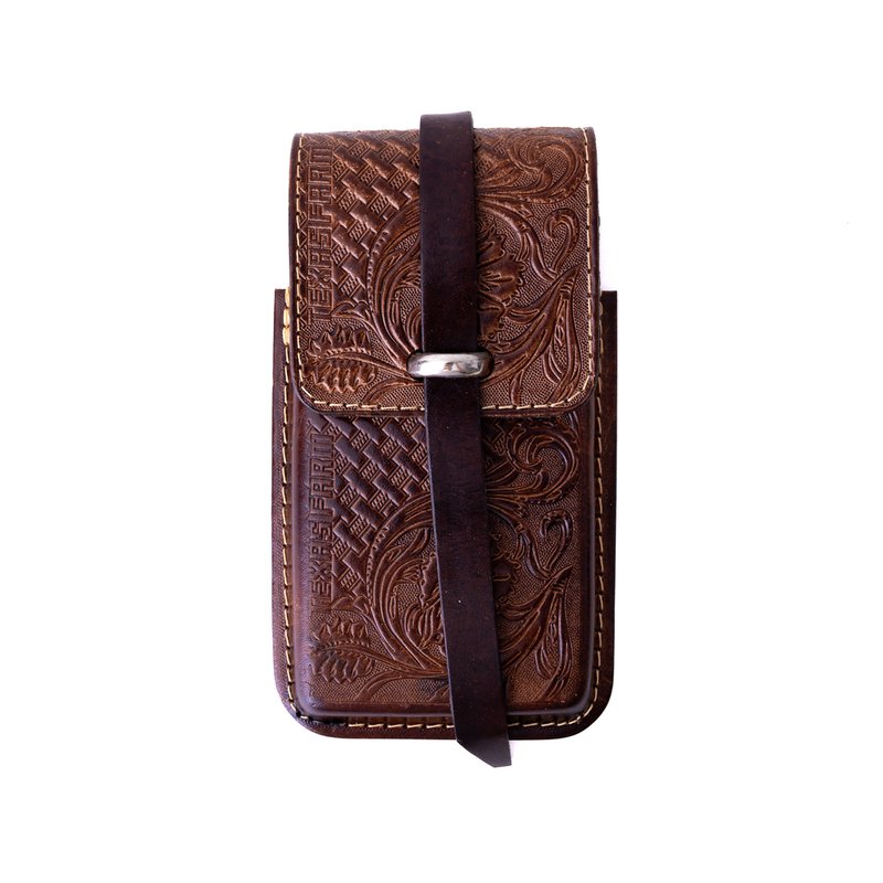 Porta Celular Couro Texas Farm - Vertical - Flor - PC001_3 - Marrom